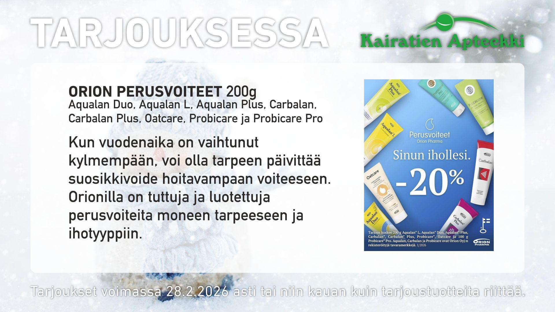 Korkalovaaran Apteekki sulkee ovensa 4.2.2026. Lue tiedote kokonaisuudessaan Korkalovaaran Apteekin sivuilta.